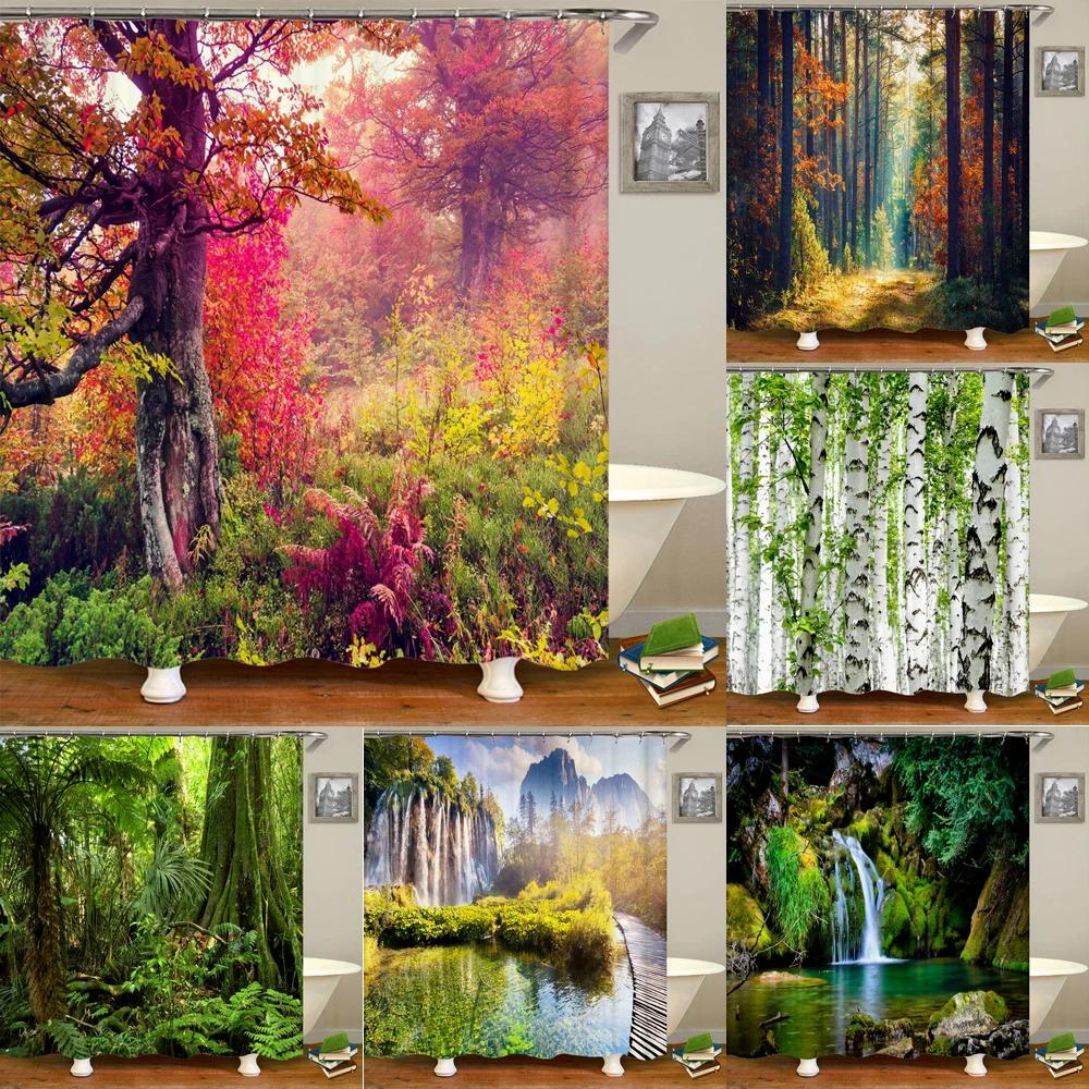 3D Nature Forest Trees landscape Bathroom Shower Curtain Home Decor Curtain Fabric Waterproof Shower Curtain With Hook 180x200