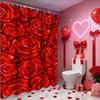 Valentine's Day Love Heart Rose shower curtain, bathroom shower waterproof curtain with 12 hooks, fish shaped home decoration