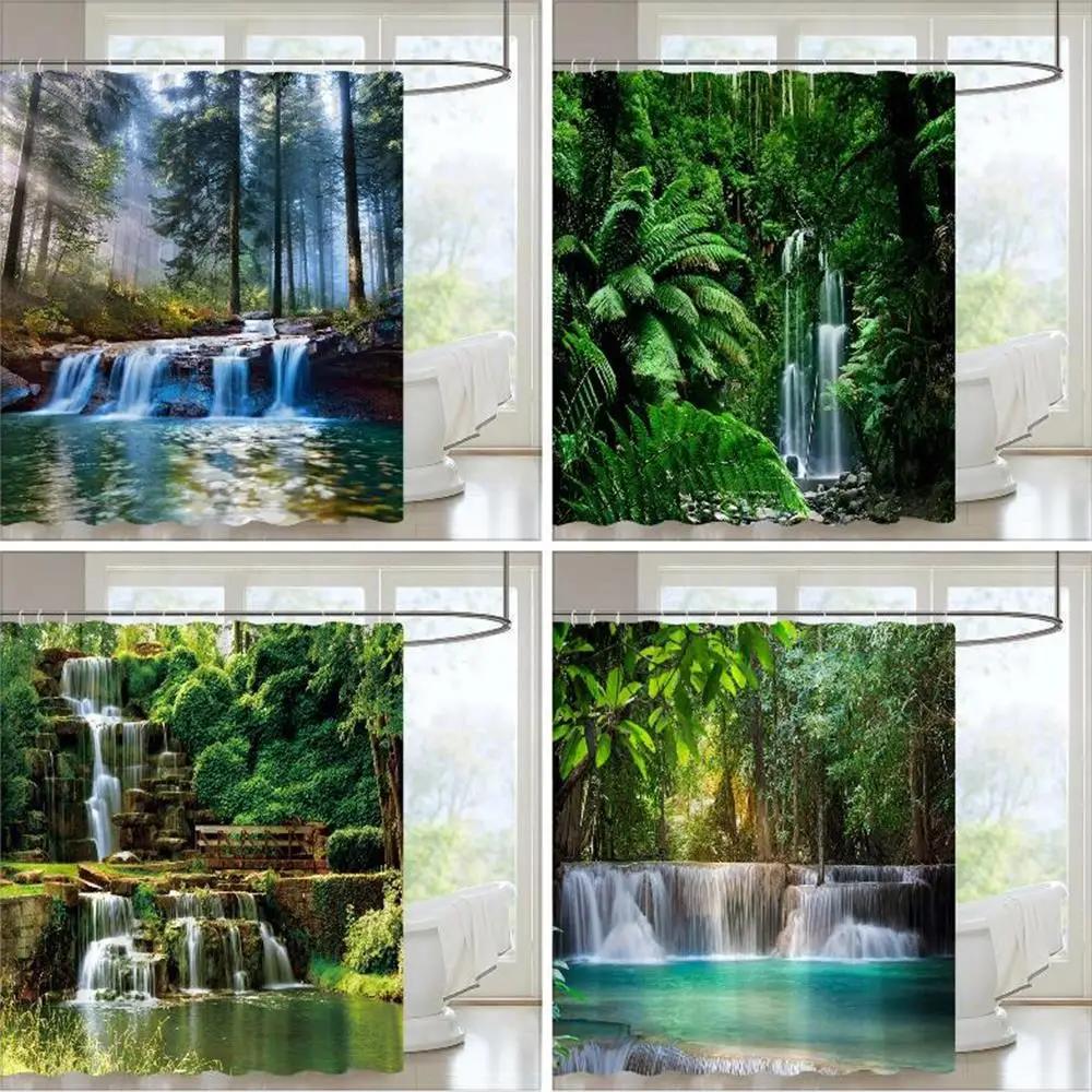 Tropical Forests Shower Curtain Aesthetic Woods Bird Fabric Bathroom Curtain Natural Scenery Home Decor Bathroom Accessories Set