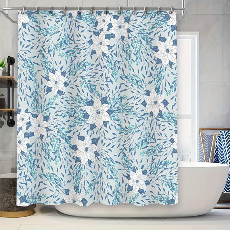 Luxury Blue Floral Pattern Shower Curtain Waterproof Bathroom Decor Home Decoration Customizable Sizes Available for Purchase On