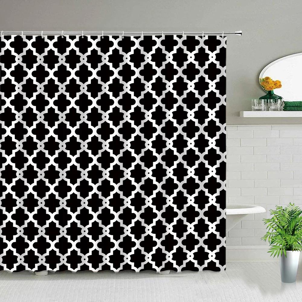 Black White Geometric Bathroom Shower Curtains Bohemian Stripe Print Waterproof Frabic Chic Toilet Partition Curtain With Hooks