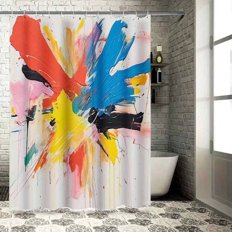 Colorful Splash Shower Curtain Waterproof Home Decor for Bathroom Multicolored Splatter Design Shower Tarpaulin with Rod Pocket