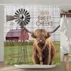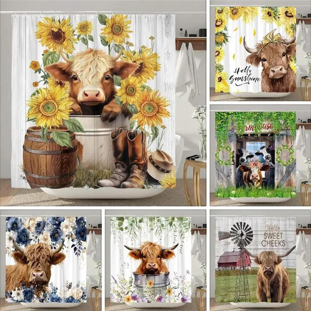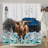 Highland Cow Shower Curtain Farmhouse Funny Bull Rustic Western Watercolor Spring Florral Cute Animal Plant Kids Bathroom Decor