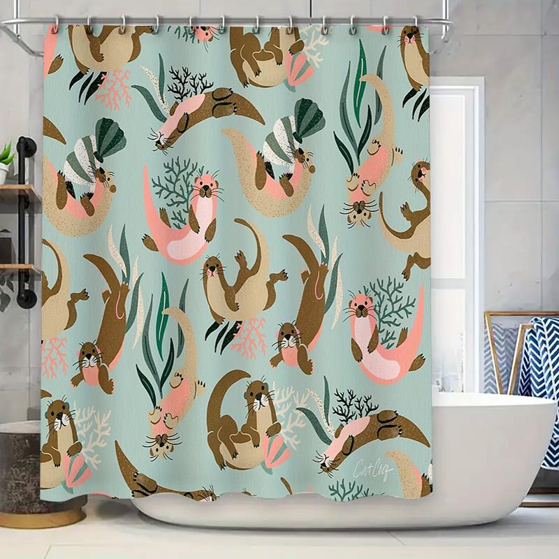 Cute Otter Shower Curtain Forest Animal Bathroom Decor Woodland Nature Waterproof Fabric Backdrop for Spa