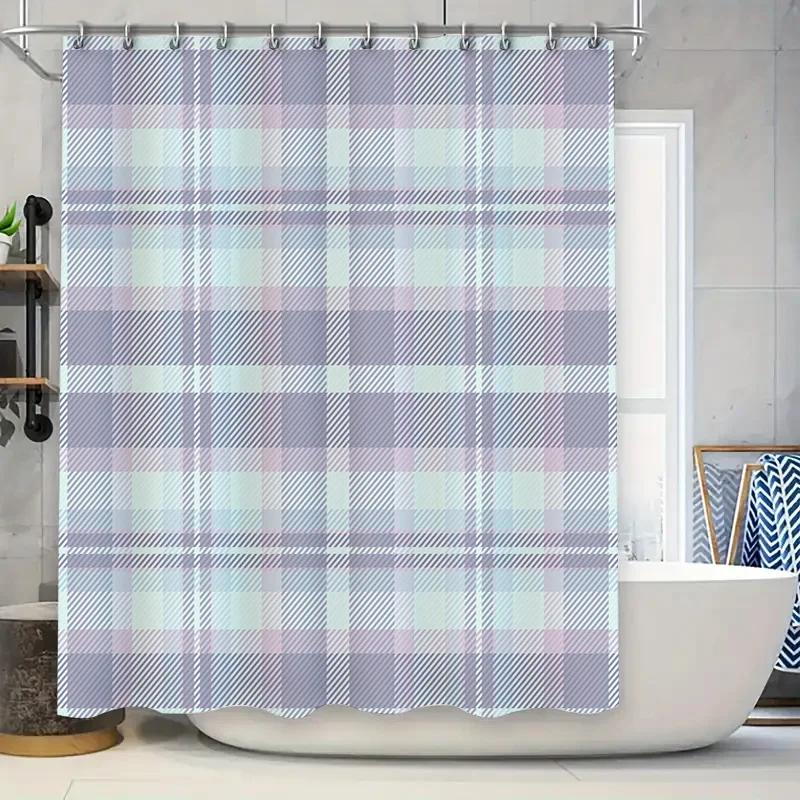 Modern Plaid Shower Curtain Waterproof Fabric Bath Decor for Home Decor