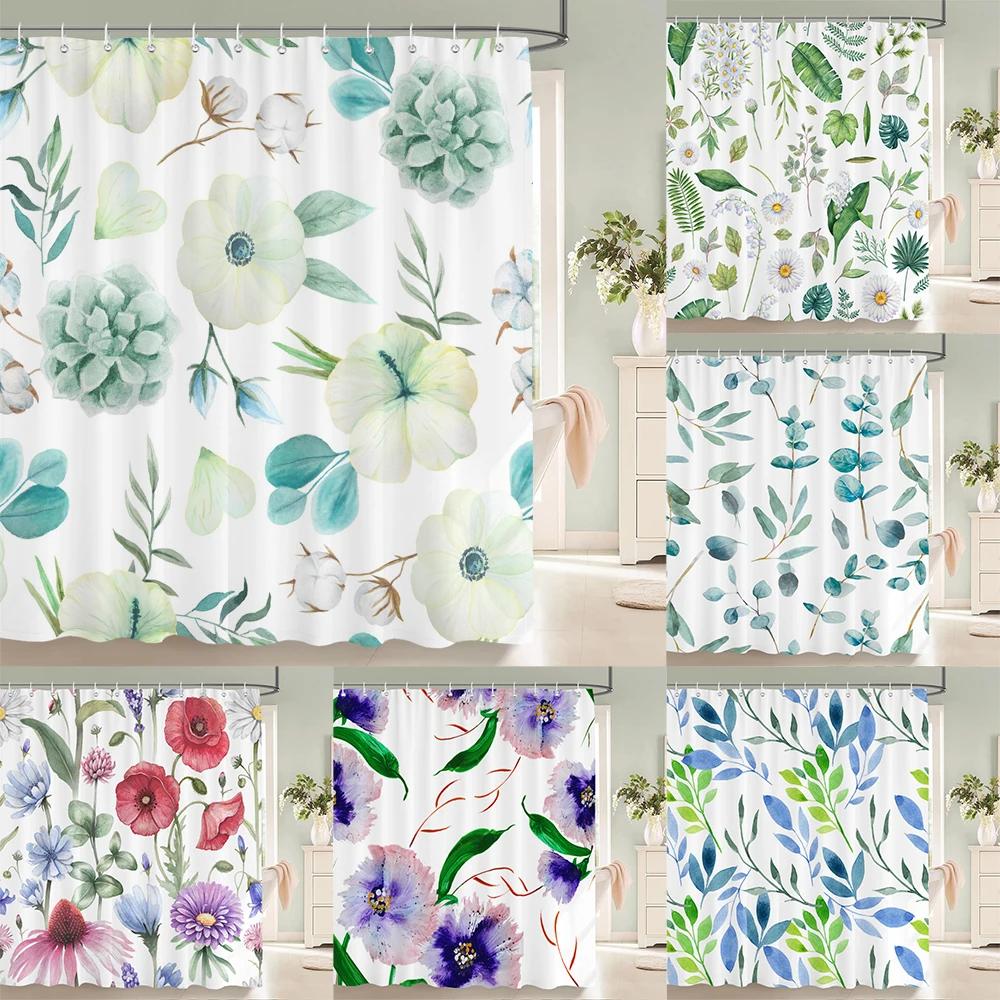 3D Printed Fabric Shower Curtains Fresh Flowers Plant Bath Screens Waterproof Bathroom Decor with 12 Hooks Shower Curtain