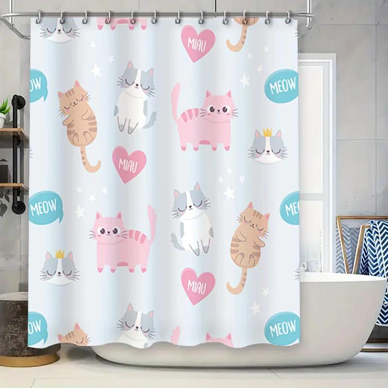 Adorable Cat Pattern Shower Curtain Set for Bathroom Decor Pink and Blue Colors Included, 72 x 84 Inch Size Perfect Fit for Bath