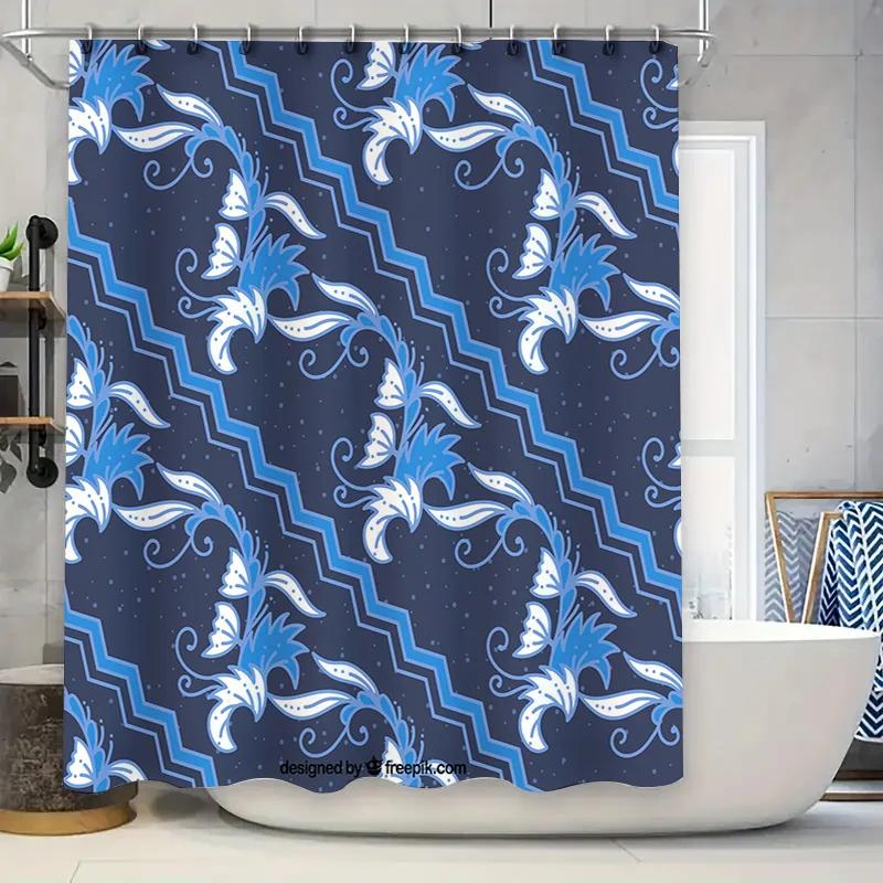 Blue and white flowers shower curtain waterproof bathroom decor modern style pattern home accessories wall hanging fabric made i