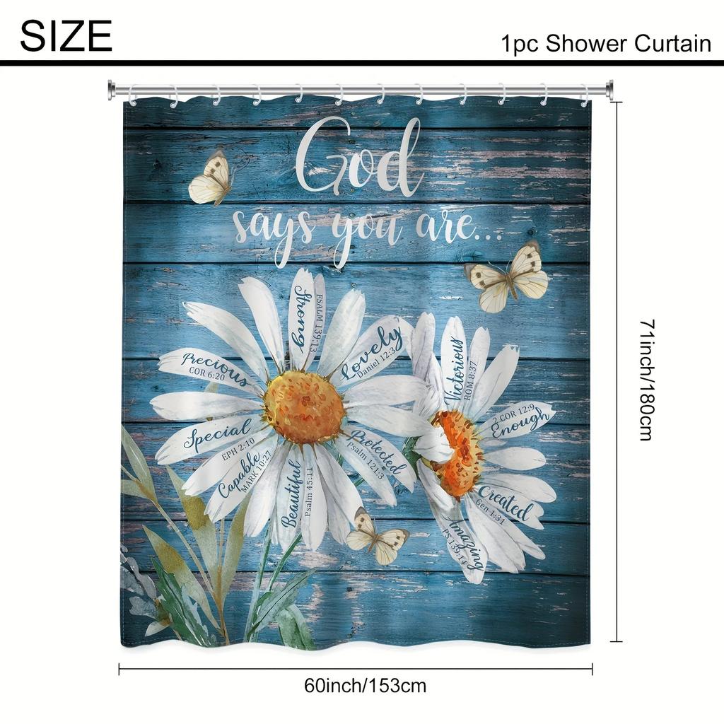 1pc Vintage Daisy Quote Shower Curtain - Farmhouse Wood Panel, Butterfly, Bible Verse, Polyester, 60x71In, 12 Hooks