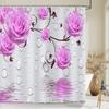 Beautiful Flower Butterfly Art Fabric Shower Curtain,Rose Decor Bathroom Shower Curtains with Hooks,Waterproof Bathroom Curtains