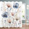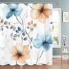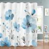 Modern Watercolor Blue Flowers Print Shower Curtain, Polyester Shower Curtain with Hooks for Bathroom Decorative Shower Curtain