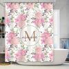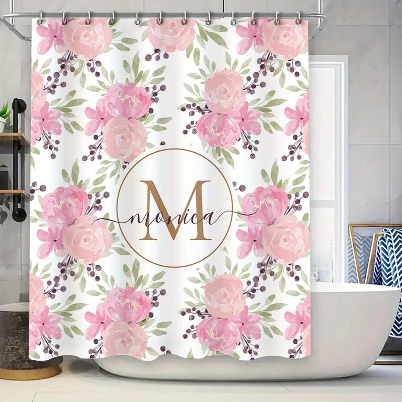 Stylish Bath Shower Curtain Pink with Silver Metal Hook Rings for Bathroom Decorations Waterproof Fabric Bathtub Surrounding Hig