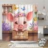 Różowa Urocza Świnka Serce Miłości Kwiatowa Zasłona Prysznicowa, Dekoracyjna Zasłona Prysznicowa do Łazienki, Wodoodporna Zasłona Prysznicowa z Haczykami