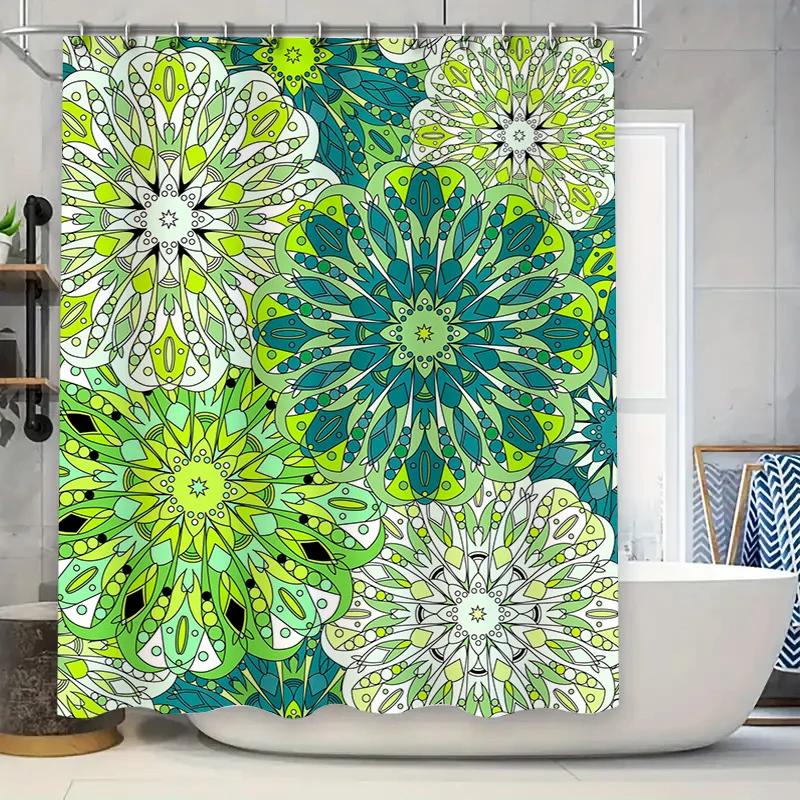 Green Mandala Bath Curtain Decorative Shower Curtain with White Bathtub in Bathroom Accessories Set for Home Decoration Size69 x
