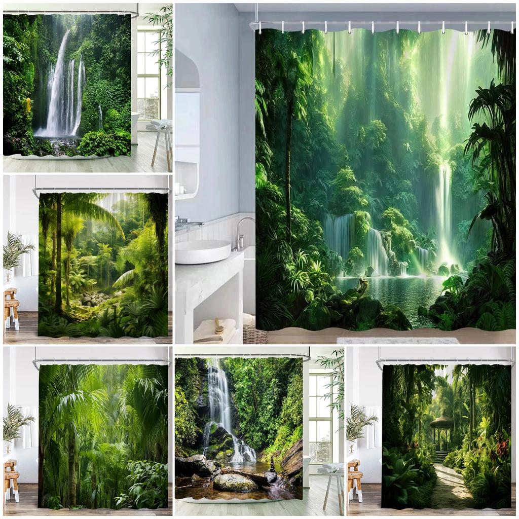 Nature Landscape Showewer Curtains Forest Green Plant Trees Bathroom Curtain Polyester Fabric Bath Decor for Home