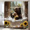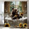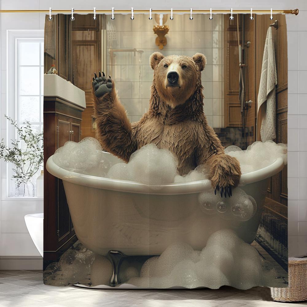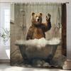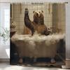 Cute Brown Bear in Bath Shower Curtain, Bathroom Decorative Shower Curtain, Waterproof Shower Curtain with Hooks