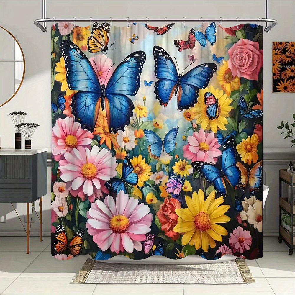 Enchanting Butterfly Garden Shower Curtain - Waterproof, Vibrant Flower Butterfly Design, Creating a Magical Atmosphere