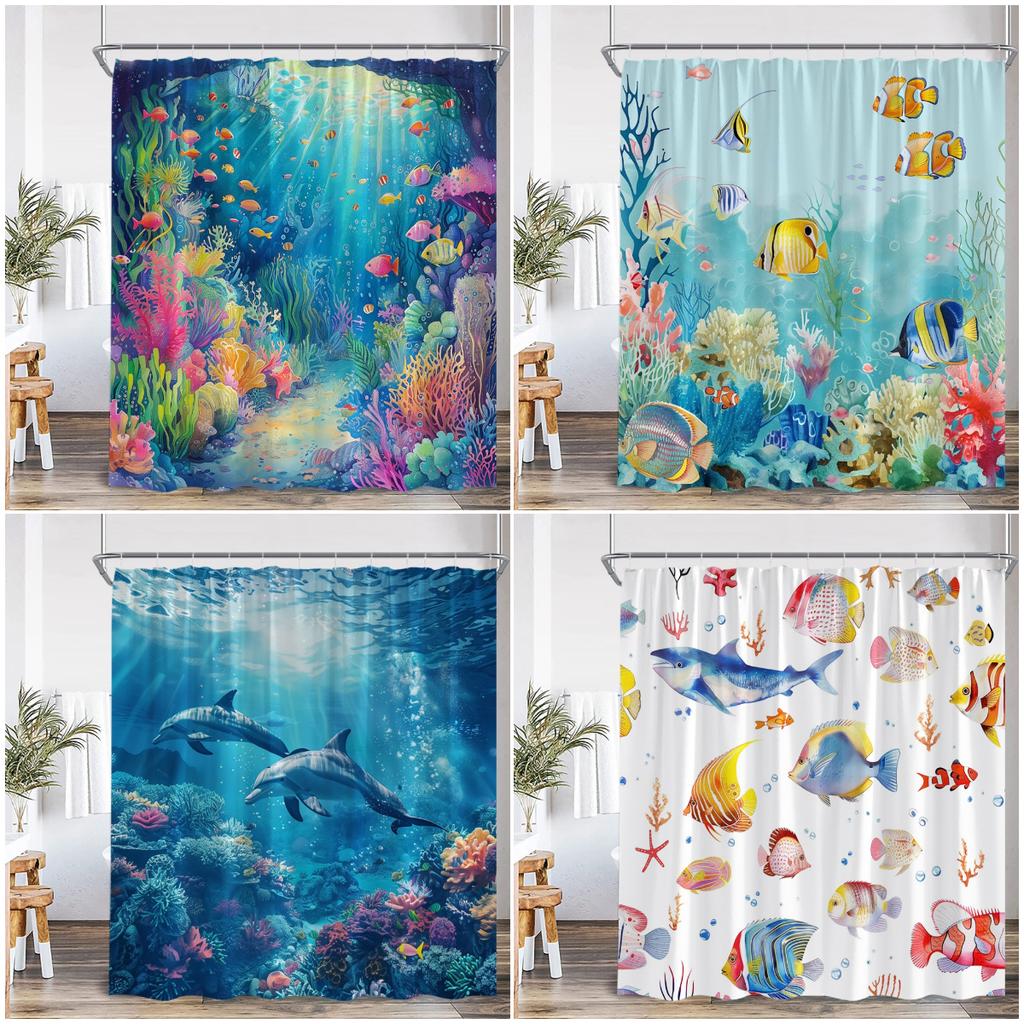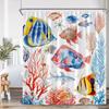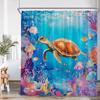 Undersea Cartoon Shower Curtain Sea Turtle Coral Seaweed Tropical Fish Ocean Bathroom Decor Polyester Fabric Bathtub Curtain