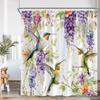 Tropical Leaf Parrots Shower Curtain Boho Vintage Floral Flower Hummingbird Plant Bathroom Decor Animal Print Modern Bath Curtai