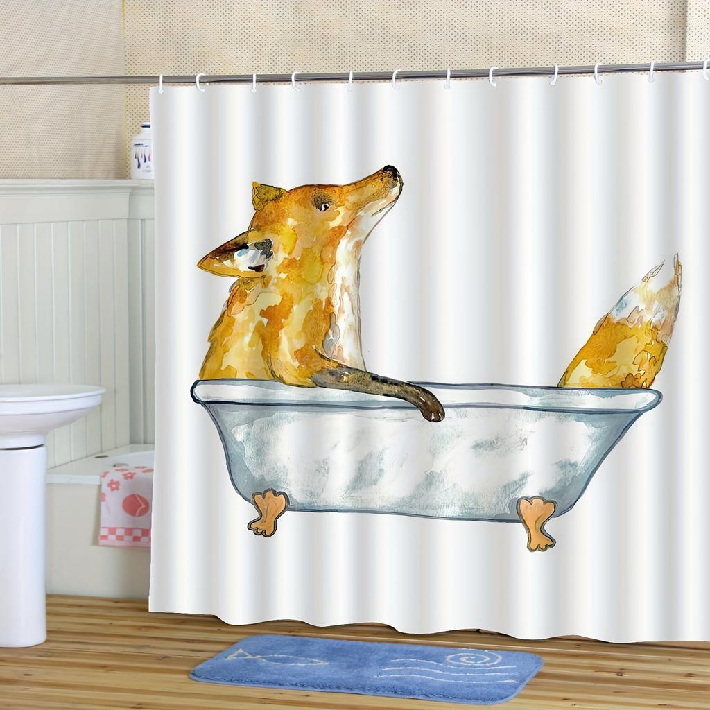 Whimsical Cartoon Fox Shower Curtain - Watercolor Print, Vibrant Colors, Machine Washable, Includes Hooks, All-Season Use