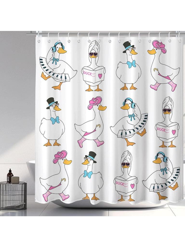 Cute Duck Shower Curtain, Silly Goose Funny Shower Curtain for Silly Goose Decor Waterproof Fabric Washable Farmhouse Bathroom