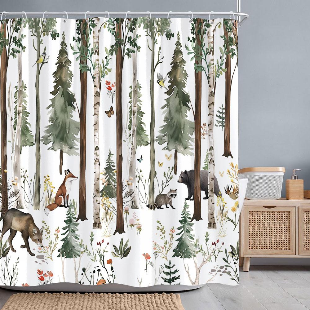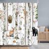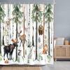 Forest Animals Watercolour Shower Curtain Deer Bear Fox Squirrel Flower Polyester Fabric Bath Curtains Bathroom Decor With Hooks