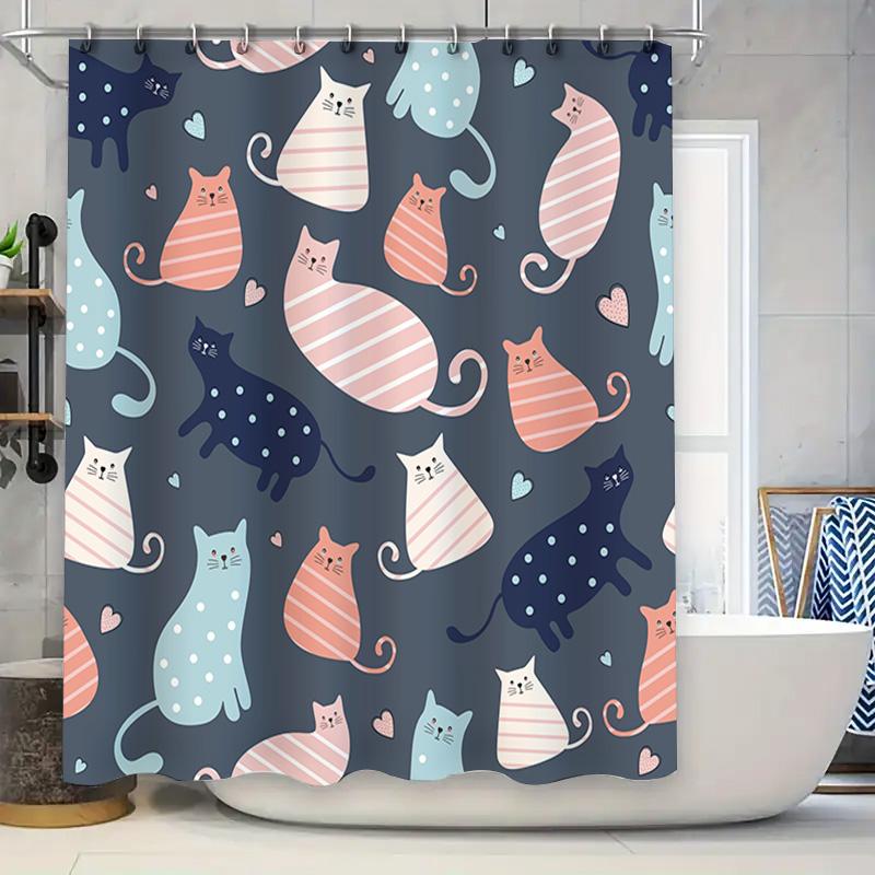 Modern Colorful Cat Print Shower Curtain for Bathroom Decor Available in Multiple Sizes