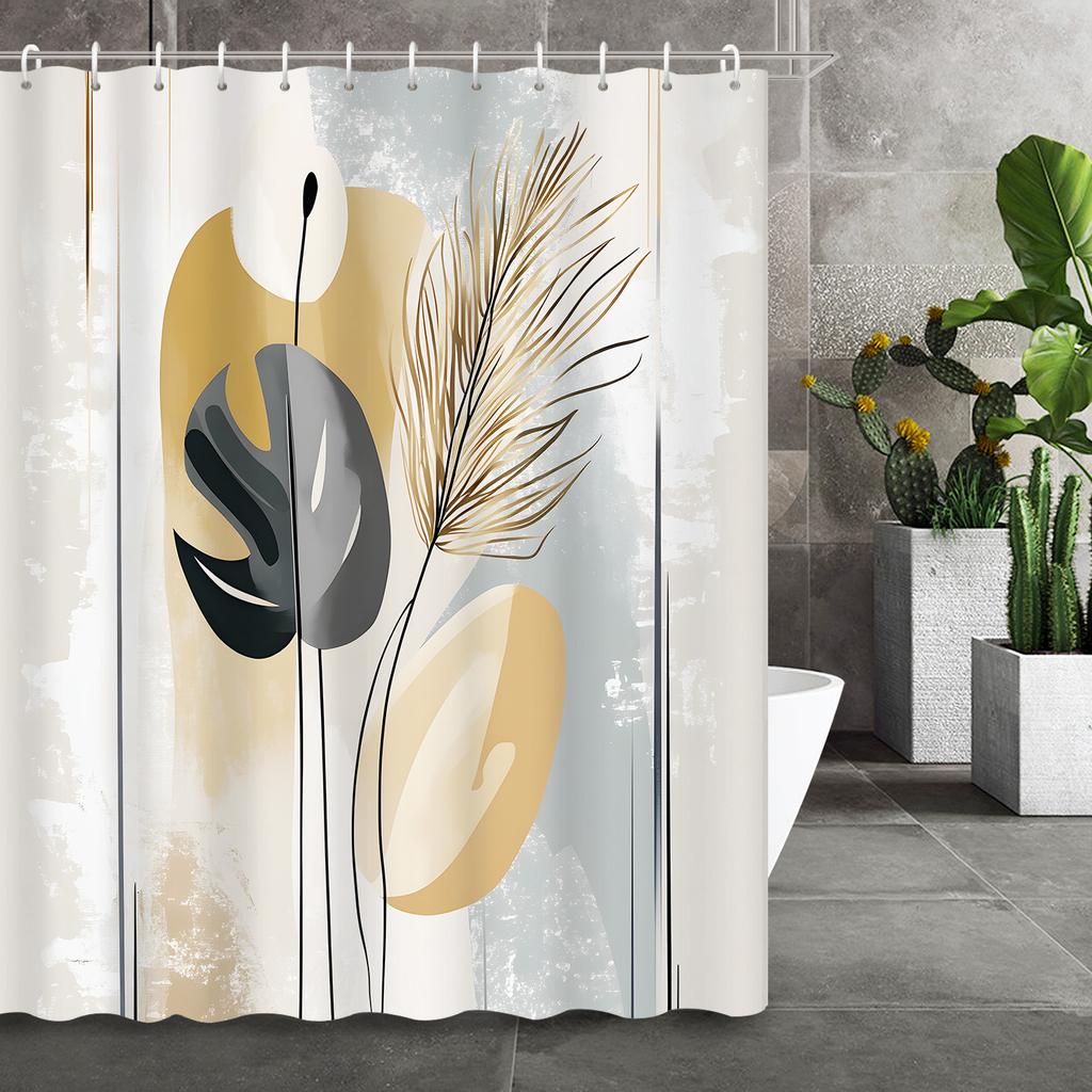 Modern Art Abstract Leaf Illustration Shower Curtain with 12 Hooks – Creative Partition & Bathroom Decoration