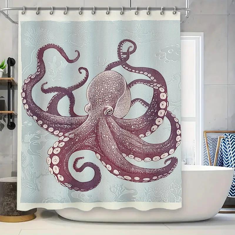 Octopus-themed Shower CurtainSoft Fabric with Waterproof Design for Bathroom Decoration Available in Multiple Sizes