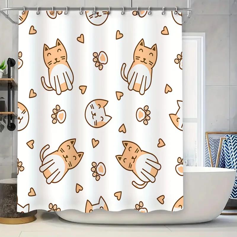 Whimsical Cat Shower Curtain for Home Decor Bathroom Waterproof Fabric Orange Kitty Pattern