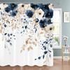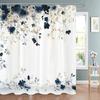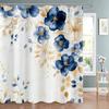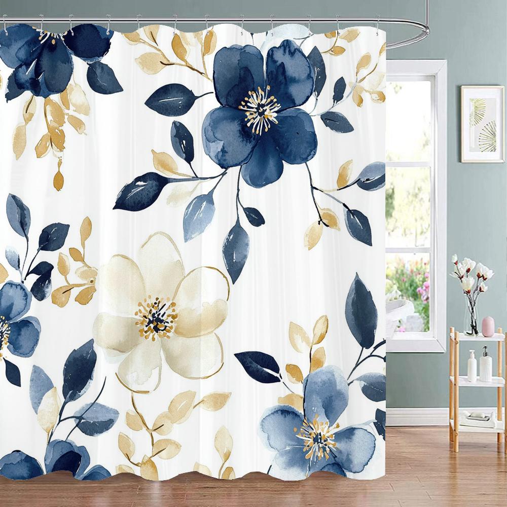 Blue Floral Shower Curtain, Bathroom Decorative Shower Curtain, Printed Polyester Fabric Shower Curtain with Hooks