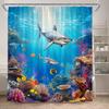 Zwierzęta Oceaniczne Żółw Morski Zasłony Prysznicowe Ryby Tropikalne Koral Podwodny Krajobraz Natury Zasłona Kąpielowa dla Dzieci Wystrój Domowej Łazienki