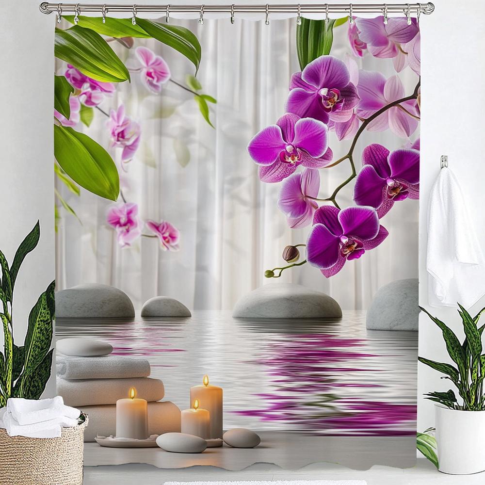 Zasłona prysznicowa Ogród Zen, Kamień, Kwiat, Spa, Japońska Medytacja Łazienka Dekoracyjna Zasłona Prysznicowa, Wodoodporna Zasłona Prysznicowa