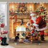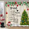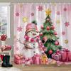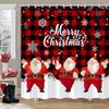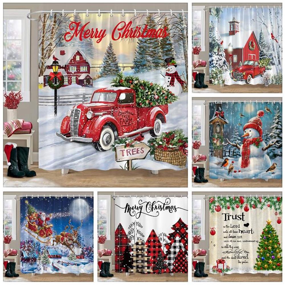 Winter Christmas Shower Curtain Red Truck Snowman Reindeer Snowy Farmhouse Bath Curtain Washable Polyester Fabric Bathroom Decor