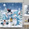 Winter Christmas Snowman Shower Curtains Snowflake Xmas Reindeer Nature Forest Snowy Scenery Farmhouse Bathroom Decor with Hooks