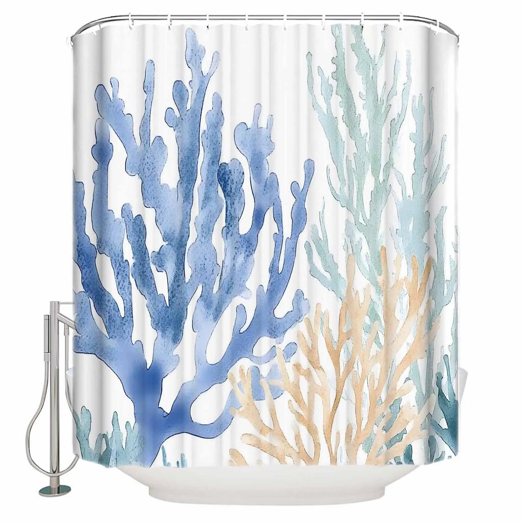 Blue Watercolor Coral Shower Curtains Waterproof Bath Curtains Home Decor Modern Luxury Bathroom Curtain