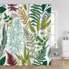 Tropical Leaves Shower Curtain Green Leaf Palm Flower Flower Bathroom Curtain Green Plant Bathroom Decoration with Hook
