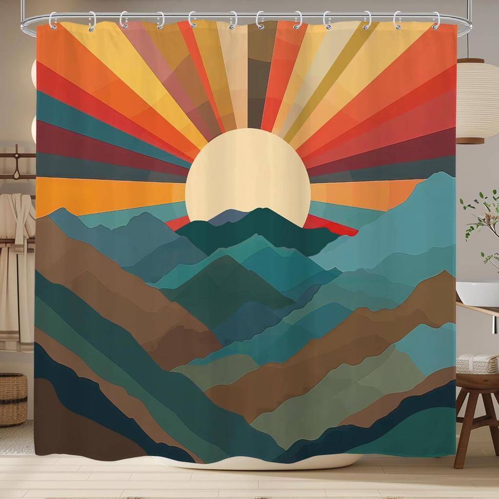 Boho Mountain Shower Curtain Abstract Sun Sunset Modern Vintage Sunrise Bohemian Nautre Landscape Cloth Fabric Waterproof