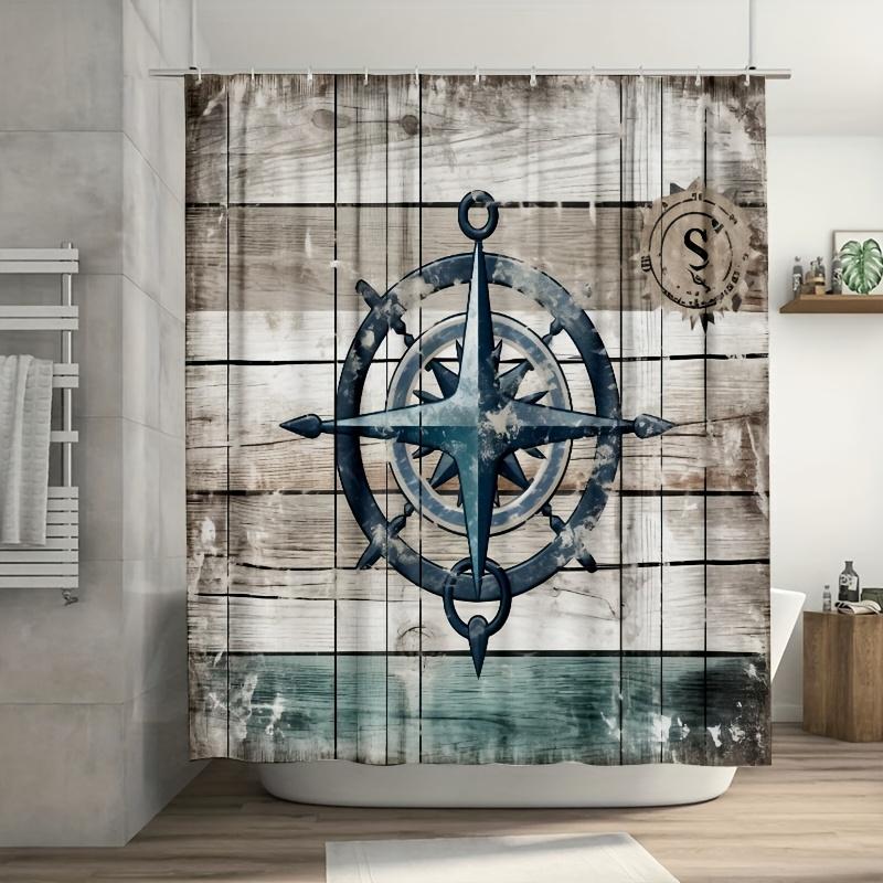 1pc Nautical-Themed Anchor & Rope Shower Curtain, Durable Polyester, Easy Clean, for Bathroom Decor