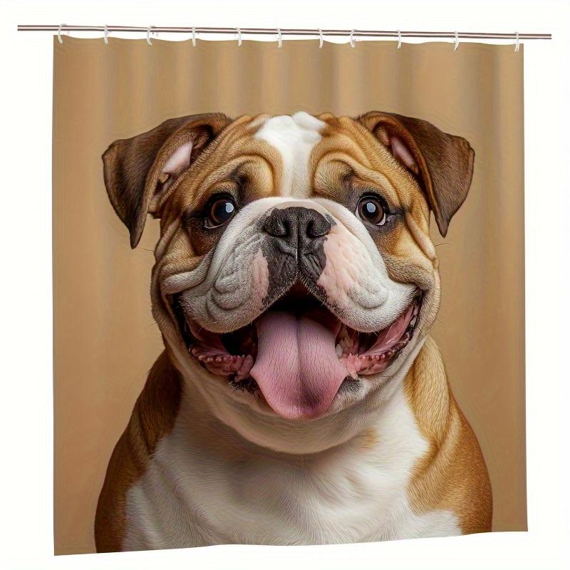 1 szt. Wesoły Uśmiechnięty Angielski Buldog Zasłona Prysznicowa - Łatwa do Czyszczenia, Żywy Nadruk Artystyczny do Łazienki, Wanny i Dekoracji Okna