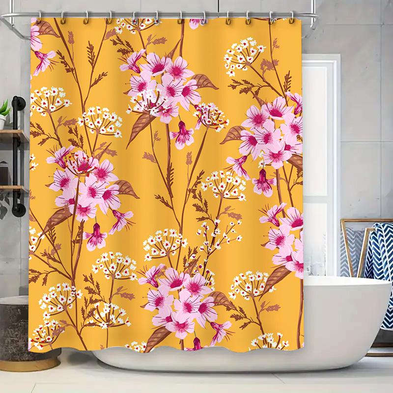 Stylish Floral Shower Curtain Pink Yellow Waterproof Bath Decor for Home Decoration