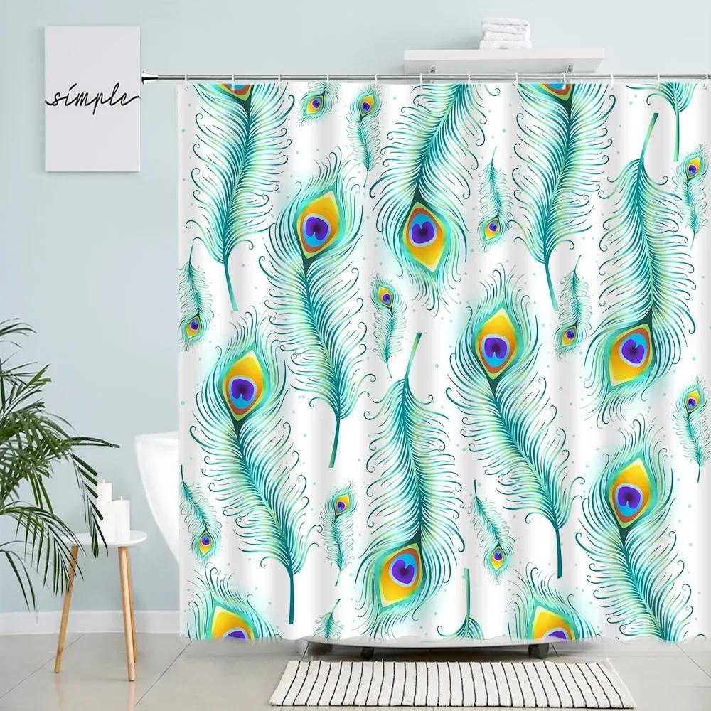 Peacocks Feather Shower Curtains Creative Design White Bath Curtain Modern Minimalist Art Nordic Bathroom Decor Sets with Hooks