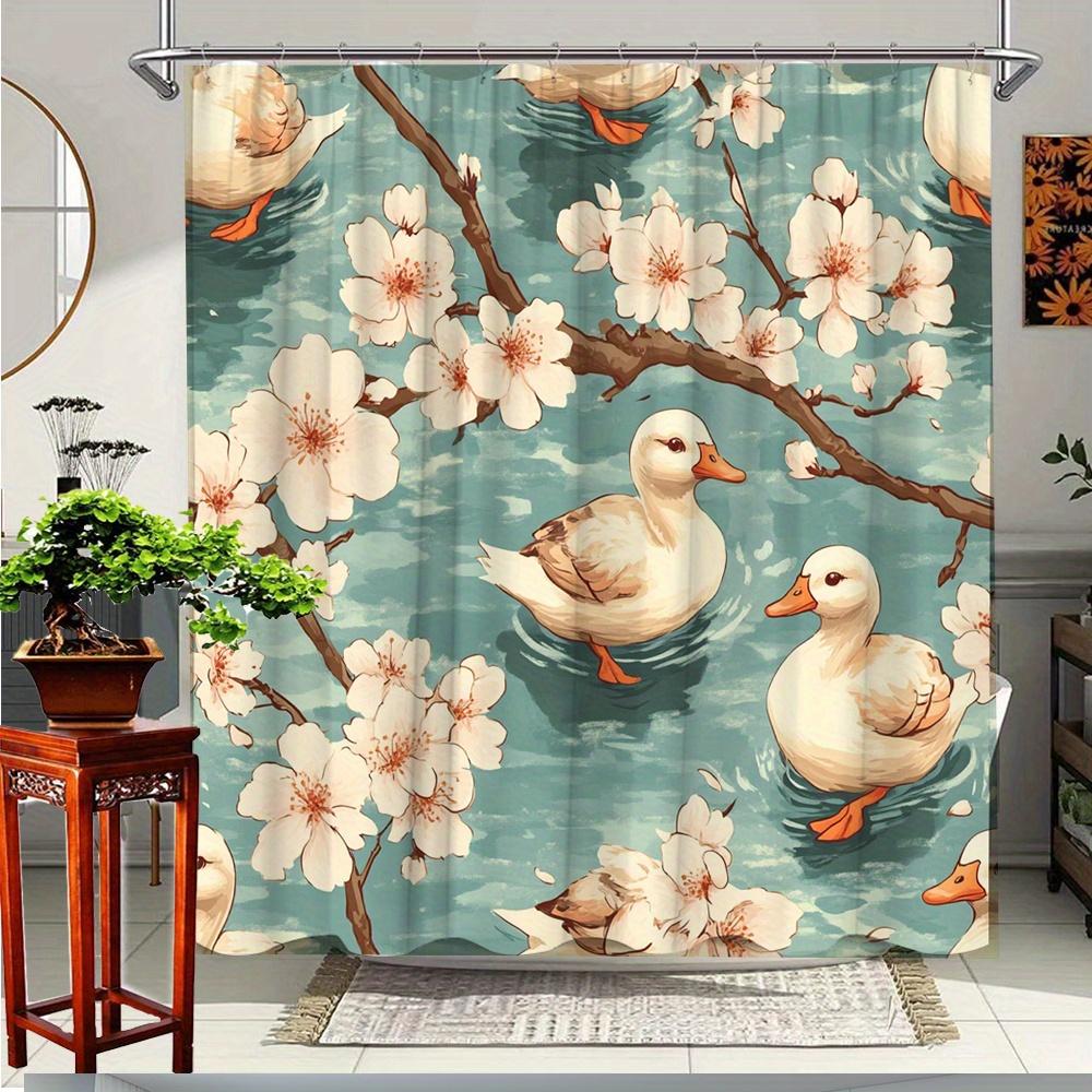 1pc Creative Duck and Floral Print Shower Curtain with Bathroom Decor made of Polyester Fabric including 12 Hooks
