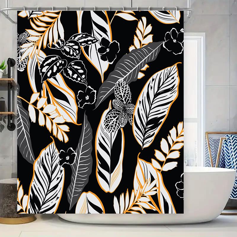 Black White Orange Floral Print Shower Curtain for Bathroom Decor Polyester Fabric Custom Size Available