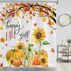 Fall Shower Curtains Brown Window Pumpkin Haystack Sunflower Maple Leaves Forest Autumn Home Bathroom Curtain Decor with Hooks