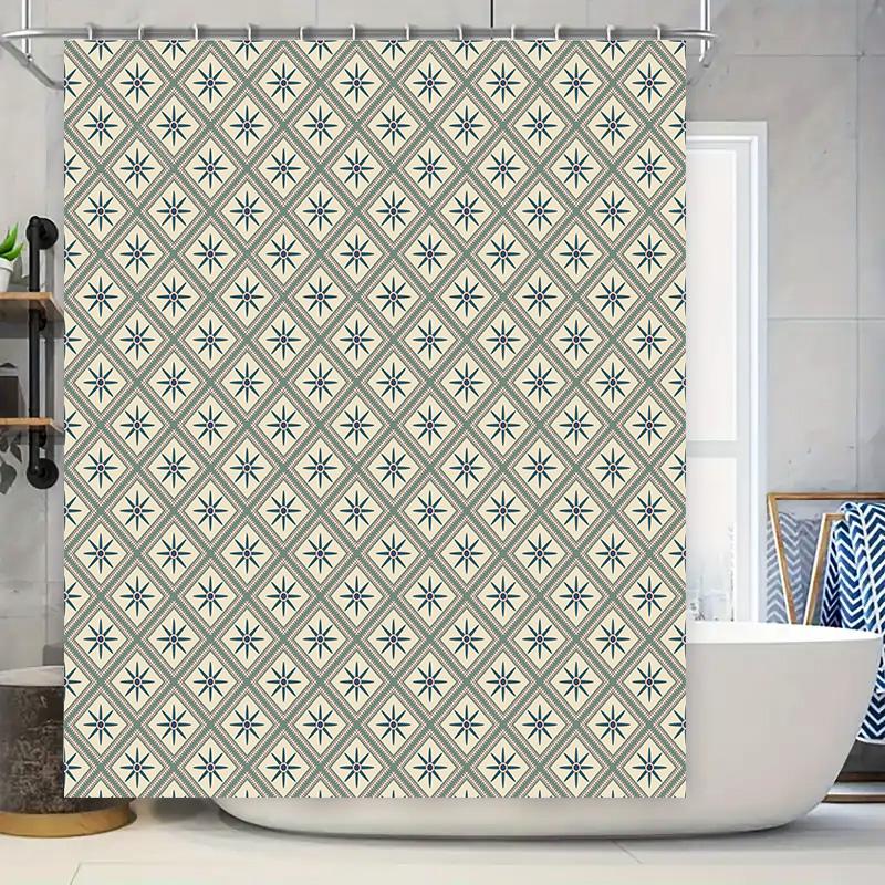 Modern Geometric Printed Shower Curtain Waterproof Bathroom Decor Home Decoration Navy Blue/White
