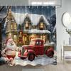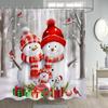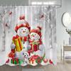 Świąteczny Bałwan Zasłona Prysznicowa Zimowy Las Czerwone Jagody Ptaki Śnieżna Scena Boże Narodzenie Zasłony Kąpielowe Materiałowe Wiszące na Ścianie Dekoracja Łazienki
