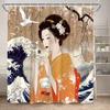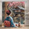 Azjatka Zasłona Prysznicowa Japońskie Kimono Kwiat Wiśni Krajobraz Malarstwo Tuszem Sztuka Poliester Tkanina Dekoracja Łazienki Zestaw Zasłon