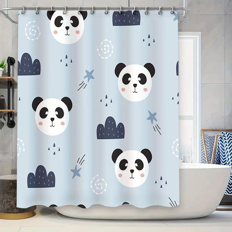 Baby Blue Shower Curtain with Cute Panda Faces and Clouds Waterproof Fabric for Bathroom Decorations in Home Garden Supplies