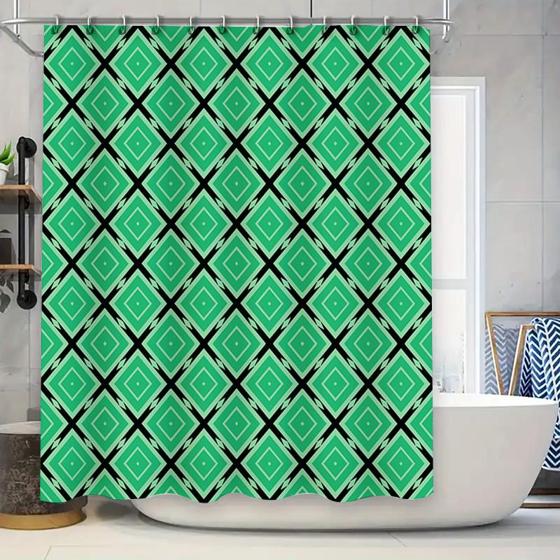 Green Black Diamond Pattern Shower Curtain Decorative for Bathroom Waterproof Polyester Fabric with Metal Eyelet Rings (Set)